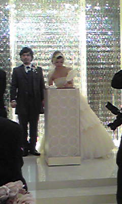 夕暮れ時の結婚式^^; 司祭はおらず人前結婚式だったよ。