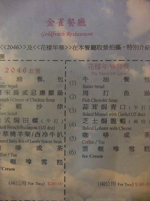 元気があったら食べたかった「花様年華」と「2046」のコース。