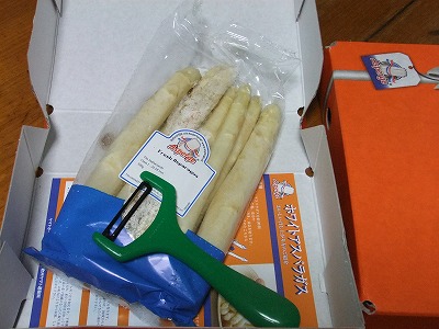 箱を開けたら・・・ホワイトアスパラガスちゃんが!!!! しかもピーラー付だよ(驚)。