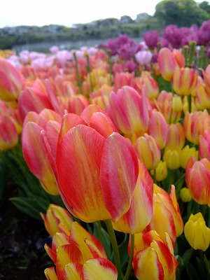 このピンクと黄色のチューリップを気に入ったのでたくさんの写真を撮ってきました。
