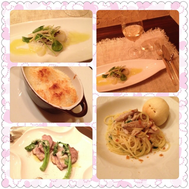 前菜三つ選び(ヒラメのカルパッチョ、鴨とポテトのなんちゃら、豚肉のソテー?)、最後にイワシとカラスミのパスタ。サービス税付きで4500円位だったかな。味も雰囲気もバッチリで大満足! 大人な渋谷もたまには良いです(笑)。