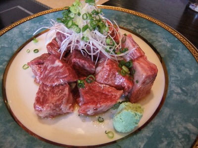 冷麺はり付けは可愛くていいけど、お味は普通かな。麺が違えばもっといいかもだね。 和牛にぎり寿司はこのお店に決めたときから「食べたい」と思っていた一品なんですよね。 薄めにカットされ、口の中でとろけるような生肉に甘めのタレがついてるんですよ(至福の瞬間)。 そうそう、このHappyBirthdayの文字はホワイトチョコで周りの白い粉はお塩なんですよ(笑)。可愛いでしょ^^