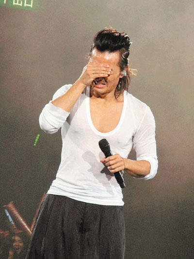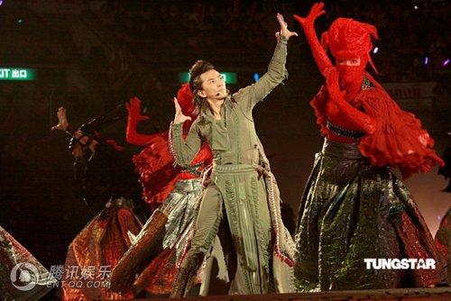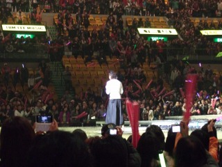 アイスクリームをおじさんが売りに来るしで季節感もないし、色んな意味で寒かったです(コラコラ)。 でも20分以上も遅れてコンサートが始まる頃には殆どの席が埋まり、コンサートが始まってしばらくすると満席になってました。この国の人は時間は守らないんだね~ あはは^^ ファンクラブ席は日本だけでなく、中国なんかのイーキン迷もたくさんいらして、熱い雰囲気での鑑賞でした。掛け声も多いし楽しかったです。それにしても男性の多いことったらなかったです(驚)。正直、40歳を過ぎたイーキンはとても”旬”なスター様とは思えないのですが、若いカップルや男性同士のお客さんなんかも多くて「何時からイーキン迷になったんですか?」とリサーチしたいくらいでした。いや~満員御礼のうえに熱狂的な中国のファンのお陰でメッチャ盛り上がったコンサートでしたね。しかも火薬の量がハンパなくてイーキン燃えるんじゃないかと心配になったし(笑)。