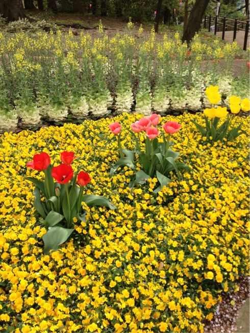 桜は終わってたけどチューリップやパンジーが綺麗でしたよ。