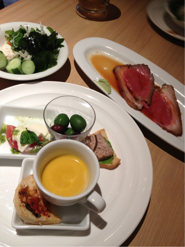 出来たてのローストビーフ、パエリアは席まで持って来てくれます。 デサートは生クリームが美味しかったのでケーキ全般文句無し! かなりオススメ度高いよん♪