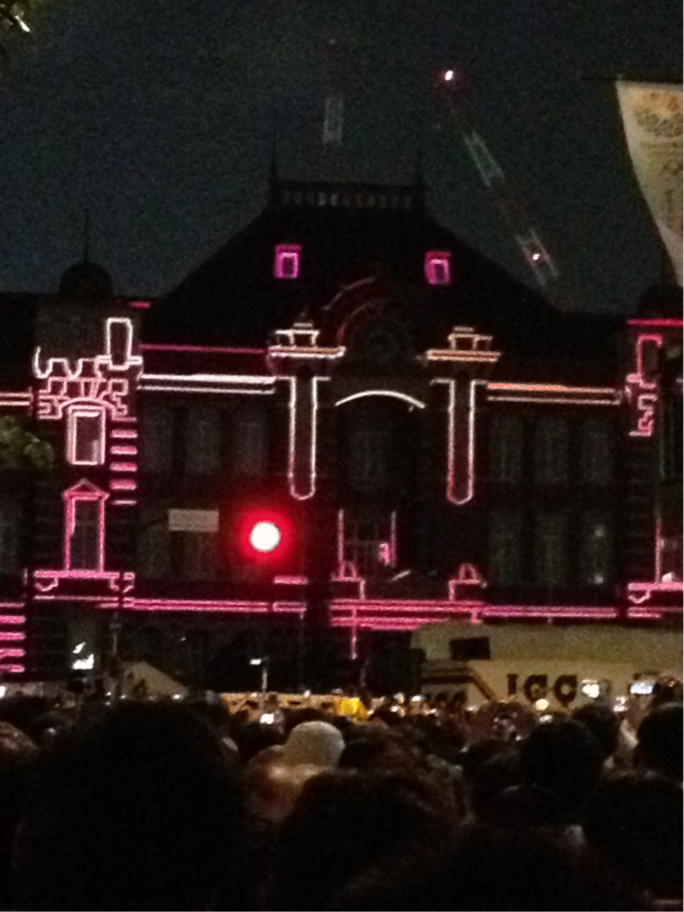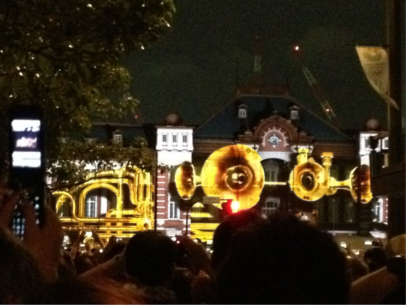 動けなく成る程食べた後、丸ノ内側へ移動しライトアップ鑑賞。