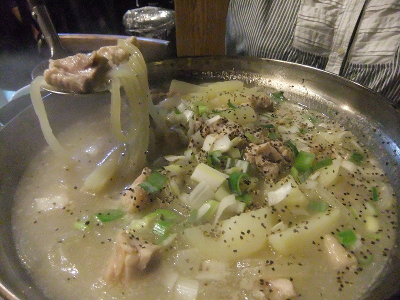 鶏肉とじゃがいもが優しいスープに胡椒がピリッと利いててめっちゃ美味しい。