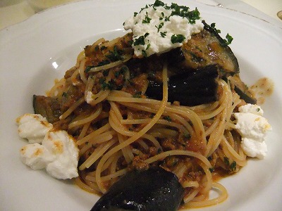 私の頼んだ揚げ茄子とリコッタチーズのミートソースはカロリー考えたらダメだけど、物凄く・・・ヤバイ位に美味かった。 ボリュームもあって大満足です。 前菜もデザートも少しずつ色々なモノが食べられるのが嬉しいなぁ^^