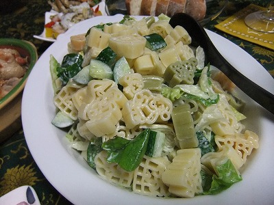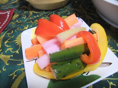 私はチキンのトマト煮、クリスマス仕様のマカロニを使ったサラダと定番のピクルスで御もてなし^^