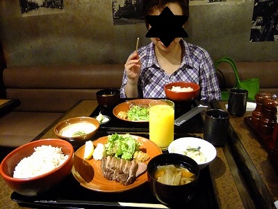 厚切り霜降り牛タン定食、麦めしなのでトロロを追加。