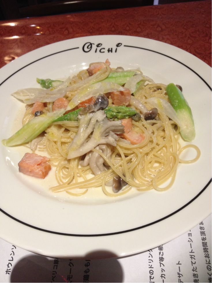 スモークサーモンとアスパラ、キノコのクリームソースがまた絶品!