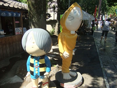 10年くらい前に調布の商店街を歩いた時は一反木綿が破壊されていたり、猫娘が汚されちゃってたりひどかったんですけど、NHKでゲゲゲの女房が放映されてからはそんなこともなくなったのかな、妖怪たちが元気そうで何よりでした(笑)