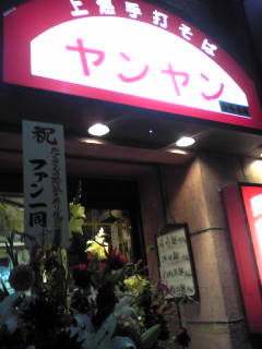 まぁ~ちゃんと閉店当日(5月14日(土))に行ってきました。 お料理を待つ間、バンバン!と麺を打つ音が聞こえてきてテンションが上がるんですよね(笑)。 最終日の夜なので満員御礼の大混雑! お店の前には「ありがとう ファン一同」と書かれたお花のスタンドが飾ってありました。 長年たくさんの方に愛されたお店なんだな~と感慨深かったです。