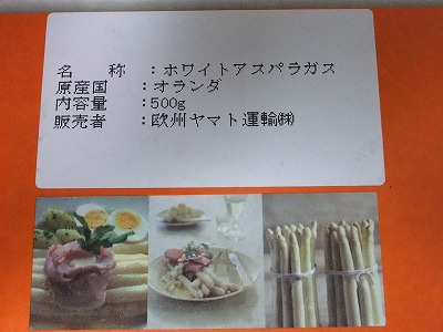 私が「ヨーロッパの春といえばアスパラガスなんだって~ 旬のホワイトアスパラガスって美味しいんだよ^^」なんて話を覚えていたらしい。 「オランダ産」とあるので「???」。 だって、彼女はヨーロッパじゃなくて新潟にいるんですから(笑)。