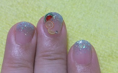 夏らしいネイルがいいかな~と思って、スイカとオレンジとレモンのネイルにしてみました。 フットケアもしてきたのでおNewのサンダルを履くのも楽しみ^^