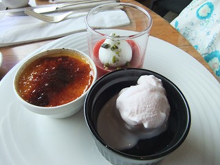 わかるかな? 桜の咲くお庭を見ながらサクラのアイスクリームやサクラ味のするパンを食べました。 素敵なお花見
