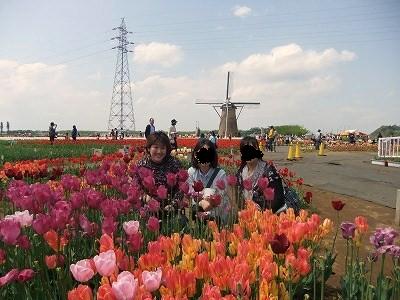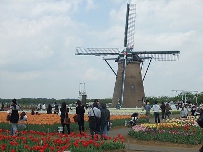 印旛沼のほとり・・・田んぼの真ん中に風車とチューリップがあります