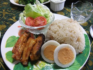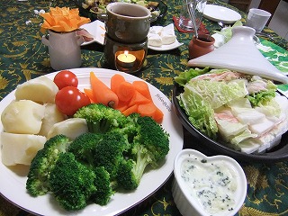 今日のこのメンバーは飲み友達でもあるので、お料理はちょっとテキトーだったかも(笑)。 チキンライス(シンガポール)、タンドリーチキン、タイフェスで買っておいたバジル炒め用のソースで野菜を炒めだたけのものとか茹でただけの野菜とかタジン鍋は白菜と豚肉のミルフィーユ風と前菜としてカルパッチョ風とか・・・なんか統一性がないでしょ(笑)。 でもマッコリ、ビール、赤と白のワイン1本ずつ飲んだのでこれはこれで良かったかもだね。