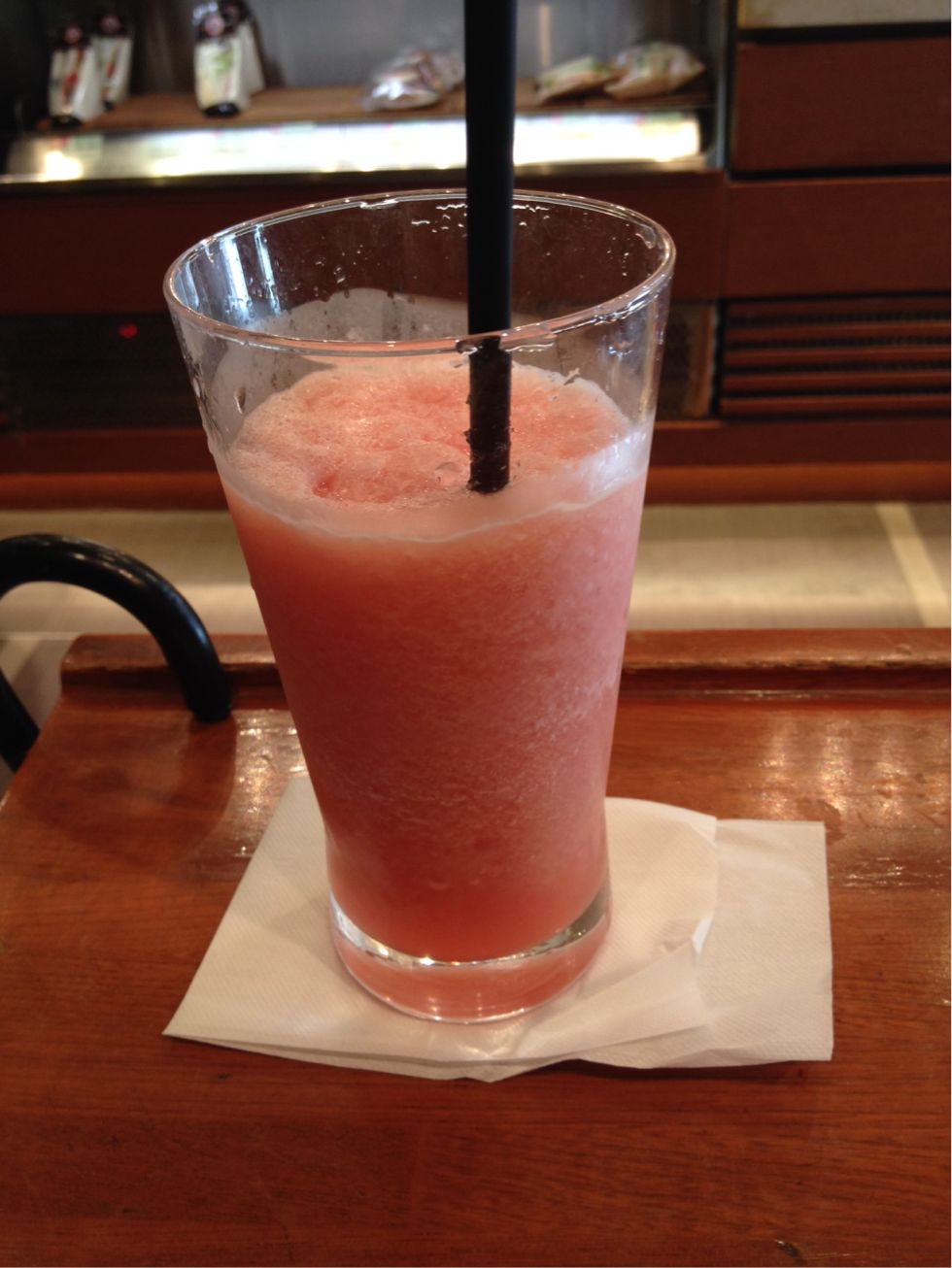 休憩にスタバで当日発売のストロベリーフラペチーノ飲んでみました。甘いけど美味しかったですよ。