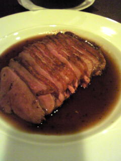 イゲちゃんチョイスは鴨のロース。 これが絶妙なお味で大感激。 お薦めしちゃうわ^^ 私の選んだスズキのオリーブソースも美味しかったですよ。 オリーブのソースが絶品でした。 オリーブだからクセがあるとは思うんですけど、嫌な感じが少しもしないんです。 どうやって作ってるんだろう~興味わくお味でした。 あ、付け合せの温野菜も美味しかったな。 何種類の野菜が入ってるのかな~ 切り方も面白くて勉強になります。