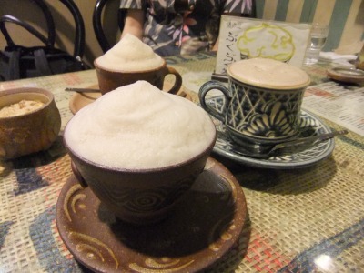 琉球珈琲館で沖縄名物のぶくぶく茶とぶくぶく珈琲、ぶくぶくココアと3品をお味比べ^^ 味わいのある陶器に入ってて、香ばしくて、泡がぶくぶくと可愛くて癒される~ ほんのりと香りの甘さがまた良いんだよね。 全部美味しかったよ^^