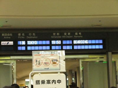 19時50分のANA便でTOKYOへ向かいました。