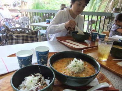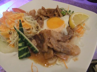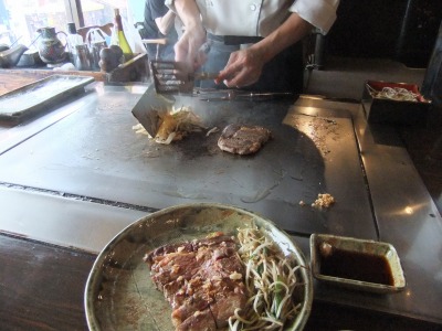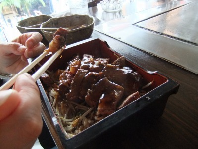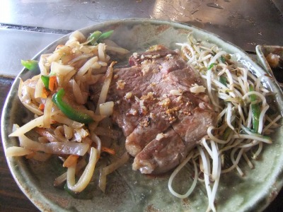 ガーリックたっぷりに焼いてもらったお肉は柔らかくて最高! 付け合せのパパイヤの炒め物がまた美味しかったな。 炒めたてはやっぱり違いますね。 Iちゃんの選んだステーキ丼を一口貰っちゃいました。 タレが甘くてトロリとしていて美味しかったですよ。