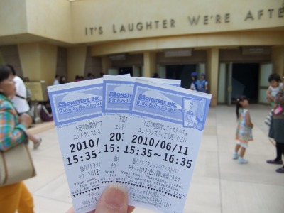 先ずはファストパスをゲットするために『モンスターズ・インク“ライド&ゴーシーク!』の列へGO! あの・・・もの凄い列なんですけど・・・と15分くらいは並んだかな。 発券されたファストパスを見れば15時35分。 なんじゃそりゃ