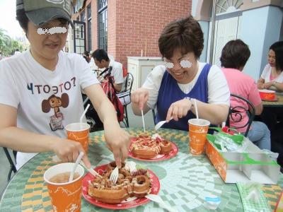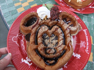 笑顔でミッキーにナイフを入れるスーピーちゃん(笑)。 個人的には抹茶あずき&黒蜜シロップのワッフルが美味しかったと思います。 アイスクリームのトッピングまで出来たら間違いなくリピーターになるわ^^