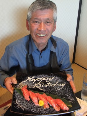 )長生きして欲しいです。お誕生日だなんだと騒ぎながら食事をしていたら、お店から和牛寿司のプレートの差し入れが・・・めちゃめちゃ感動してしまった。