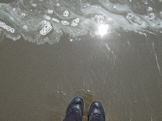 せっかく海まで来ちゃったので、浜辺を歩いてパチリ!