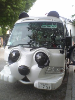 車内にはパンダのぬいぐるみ! 座席カバーはパンダの耳。
