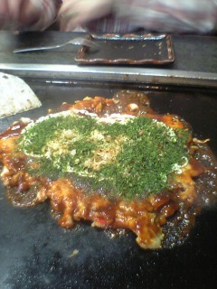 でもってお好み焼きを食べてきました。 連れのM氏が上手に焼いてくれたので大満足^^ 中がふわふわで外はサックリ。 大阪人のDNAには「お好み焼きの美味しい焼き方」が組み込まれているんだね(嘘)。