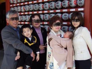 今日はお天気も良く、主役もかなりご機嫌そうだったのですが、境内に入り、神聖な雰囲気を察知した途端にオンギャーオンギャーと泣け叫びだし、祝詞なんて誰一人聞いてなかった、否、聞こえなかったかもです(爆)。 しかも担当してくれた神主さんのサポート係(笑)が学生バイトのようで、かなりのヘタレくんだったんです。 手はブルブル震えてるし、決まりごとの台詞はつっかえつっかえでやっと言えた様な言えなかったような・・・で私は笑いをこらえるのに必死でしたわ(笑)。 しかも不慣れな彼を更にパニックに陥れるかのようなひたすら泣き続ける赤ん坊の泣き声・・・もうね~ 壮絶な現場でしたわ(爆)。