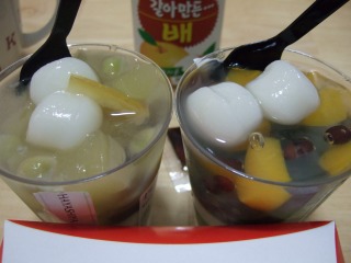 harumiから京はやしやさんの『抹茶パフェあんみつ』と『日向夏パフェあんみつ』の差し入れを頂戴しました。 しっかり抹茶のお味がしてかなり美味。 もちっとしたりつるんとしたりぐにゃにゃんだったりと様々食感があり楽しめます。 中でも下の方のムースは舌触りも甘さも絶品でした。 天国だぁ