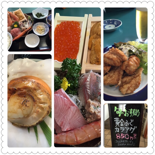 ランチはカネハチさんでボリューム満点のお刺身定食、オススメのふぐのから揚げ、金目鯛の煮付け。夜ご飯食べられない位の満腹感(笑)。