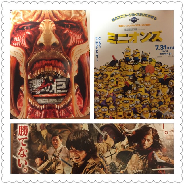 昨日の土曜日は東宝シネマ新宿で映画『ミニオンズ』『進撃の巨人』をハシゴしました。何年振りだろう〜 疲れたけど楽しかった\(^o^)/