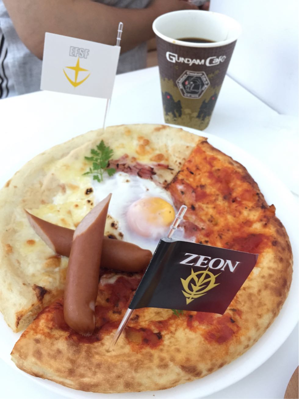 で、せっかくだからとガンダムカフェへ 友人は旗とコースターを大事そうに持ち帰りました。 愛だなぁ〜